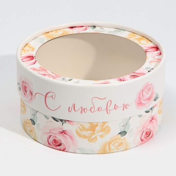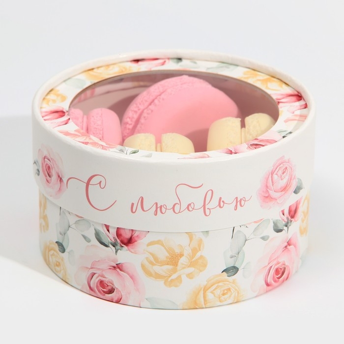 Коробка для макарун, кондитерская упаковка тубус с окном, «С любовью» 12 х 12 х 5 см