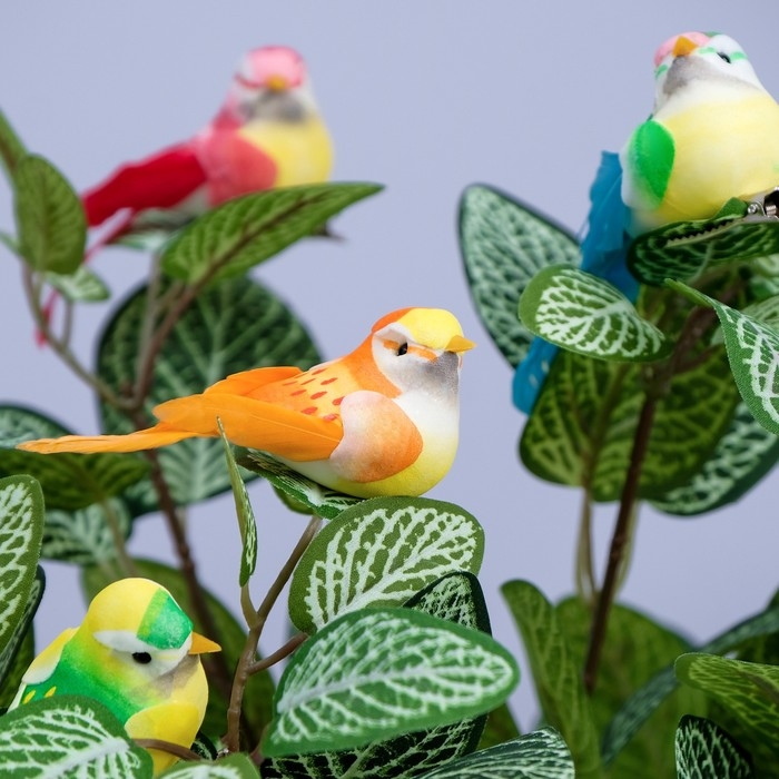 Декоративные птички с натуральными пёрышками, на клипсе-прищепке прекрасно подходят для украшения головных уборов, декора флористических композиций и топиаров, кукольной миниатюры, декора интерьера, украшения ландшафта и других творческих поделок.