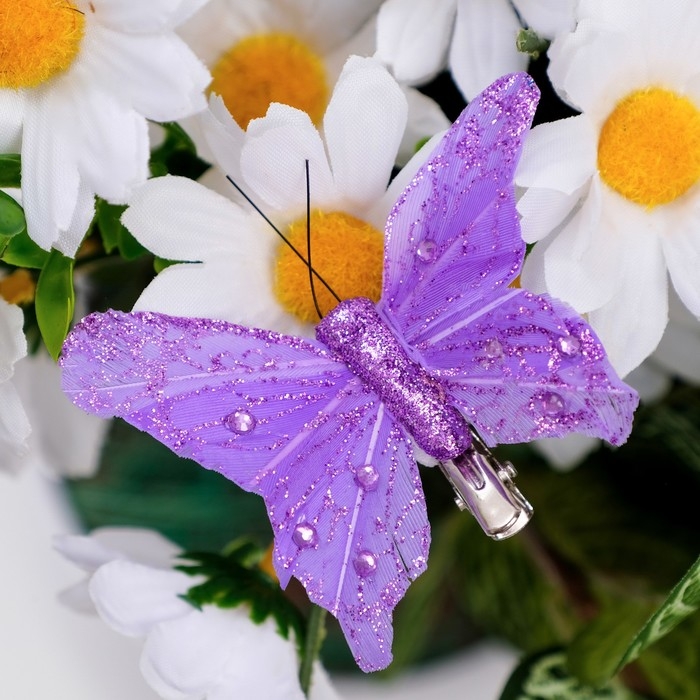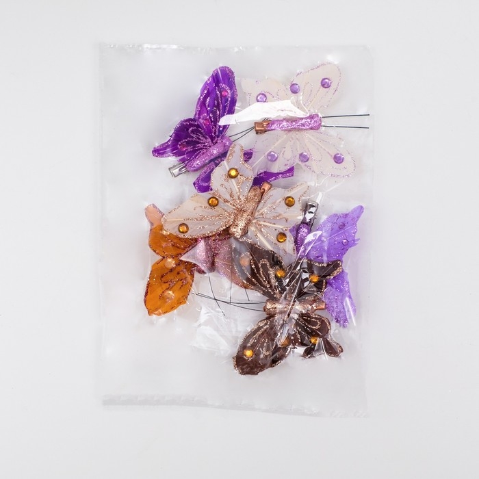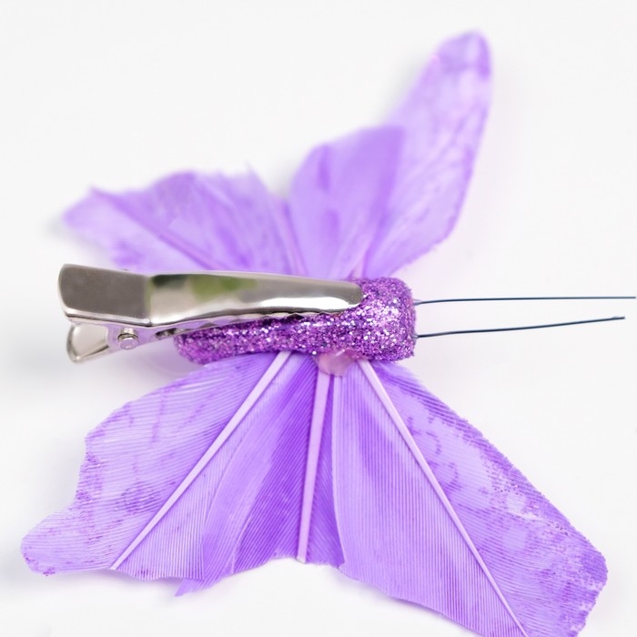 Бабочка для декора и флористики, на прищепке, пластиковая, сиреневый, микс, 1 шт., 8 х 5 х 1 см