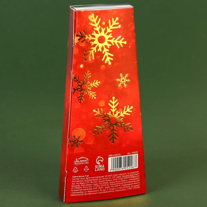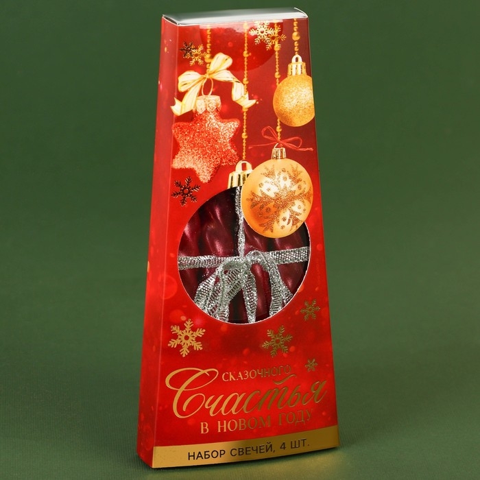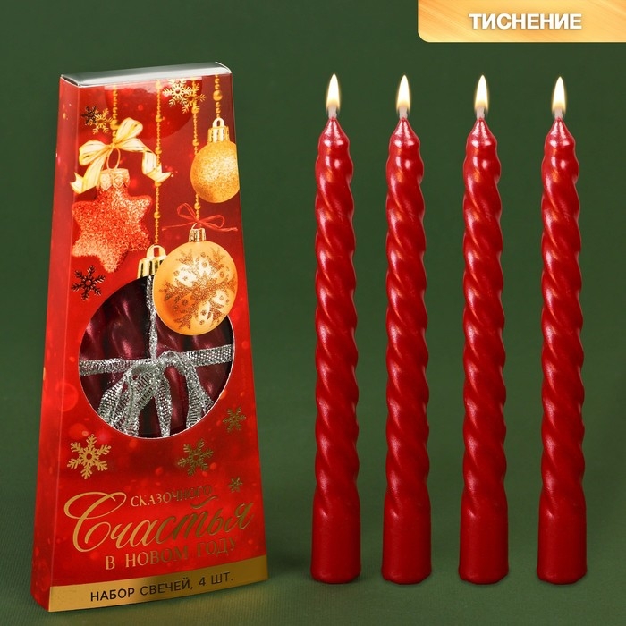 Набор новогодних восковых свечей «Новый год: Верь в чудеса», 4 шт., красные, 15 х 1 х 1 см.