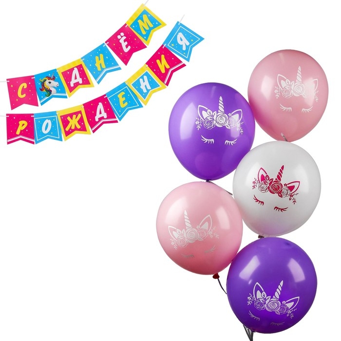 Набор гирлянда бумажная «Единорог жемчужная» + шарики набор 5 штук