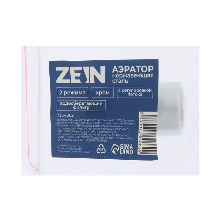 Аэратор ZEIN, регулировка потока, водосберегающий фильтр, 2 режима, нержавеющая сталь, хром