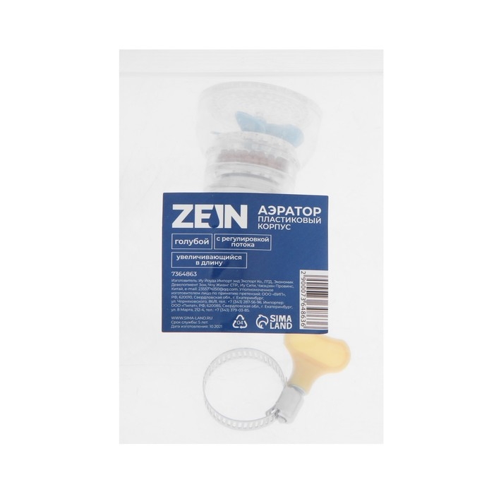 Аэратор ZEIN, увеличивающийся в длину, регулировка потока, пластик, голубой