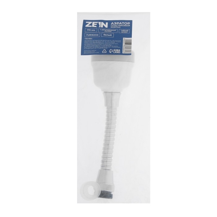 Аэратор ZEIN, с регулировкой потока, на гибком шланге,190мм, 3 режима, пластик, белый