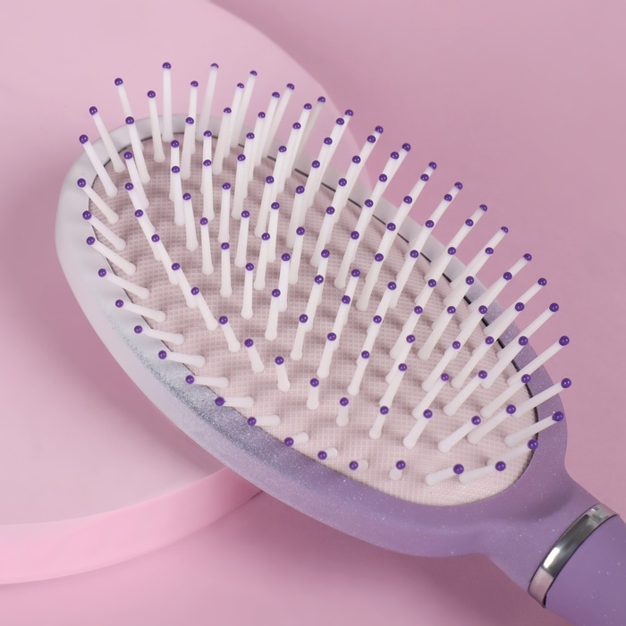 Расчёска массажная, прорезиненная ручка, 7 × 24 см, цвет белый/фиолетовый