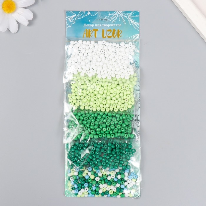 Бисер круглый 6/0 "Такой разный зелёный" 5 цветов х 20 гр 20х8х0,7 см
