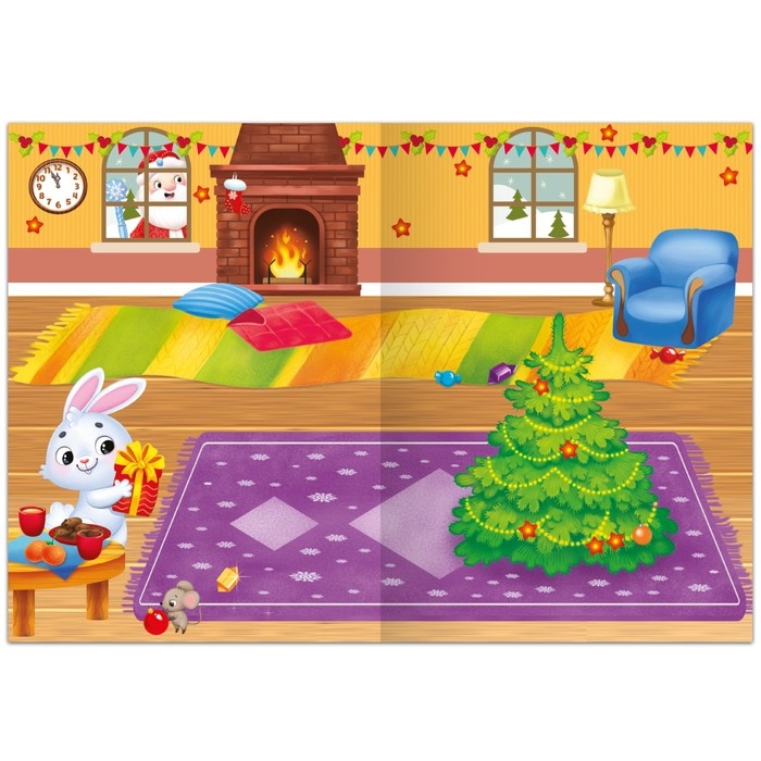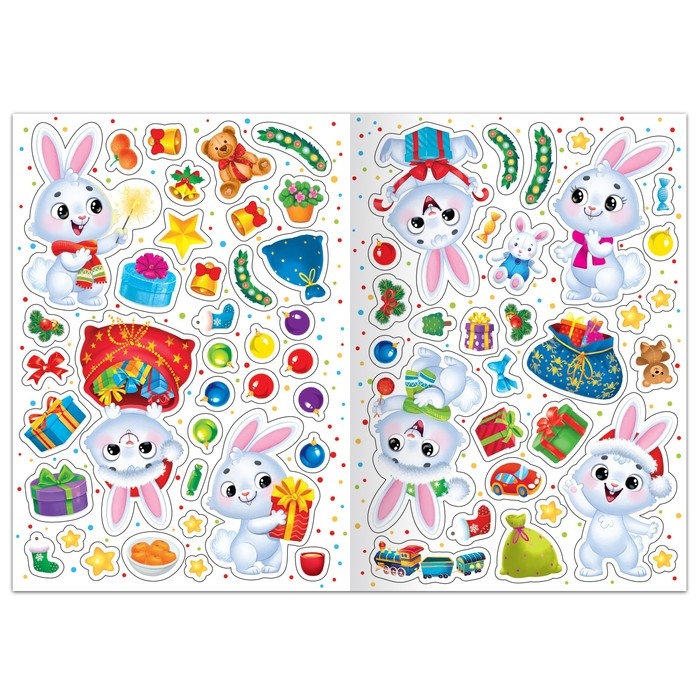 Книга с многоразовыми наклейками «Мои весёлые наклейки. Новогодние хлопоты. Зайчонок»