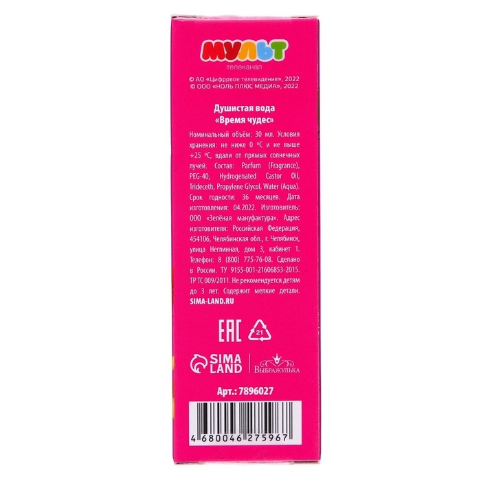 Душистая вода, аромат клубники, 30 мл "Время чудес" , Сказочный патруль