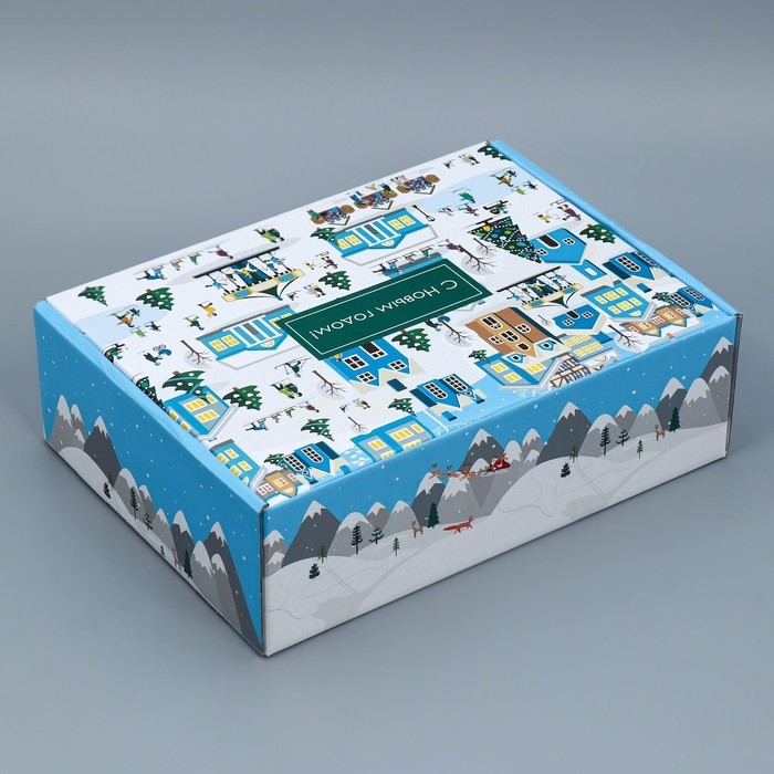 Коробка подарочная новогодняя складная «Город», 30,7 х 22 х 9,5 см, Новый год