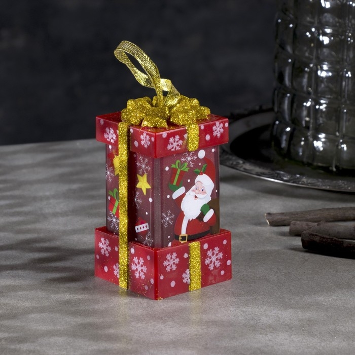 Светодиодная фигура «Красный подарок с Дедом Морозом» 6.3 × 11.5 × 6.3 см, пластик, батарейки АААх3 (не в комплекте), эффект пламени