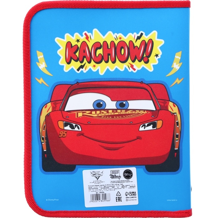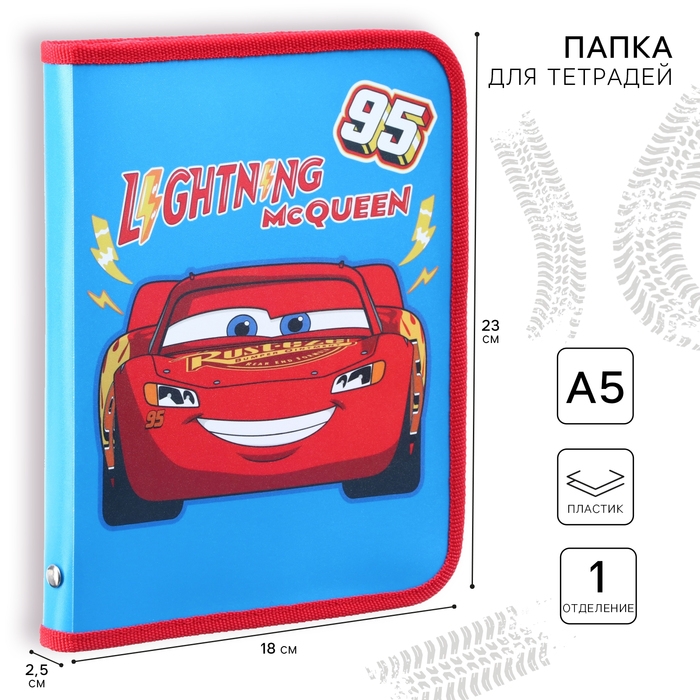 Папка пластиковая для тетрадей А5, на молнии, Тачки