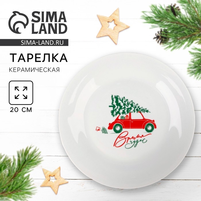 Новый год. Тарелка керамическая «Время чудес», 20 см, цвет белый