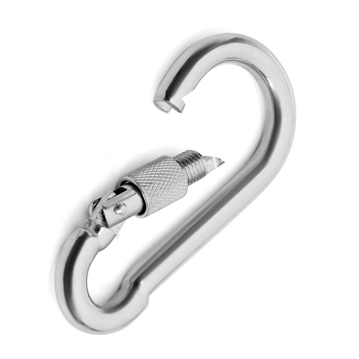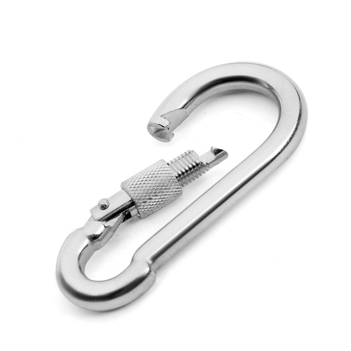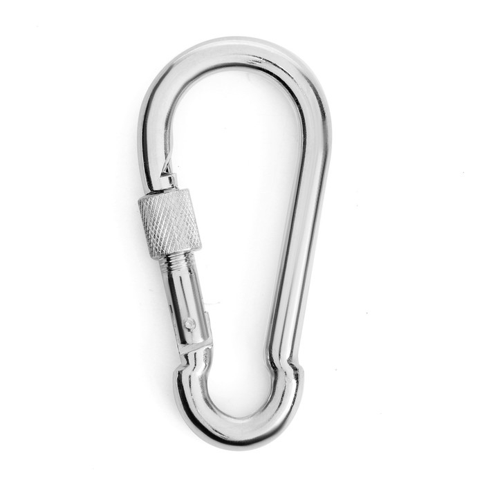Карабин монтажный с фиксатором ТУНДРА krep, DIN5299D, 10х100 мм, оцинкованный, 1 шт.