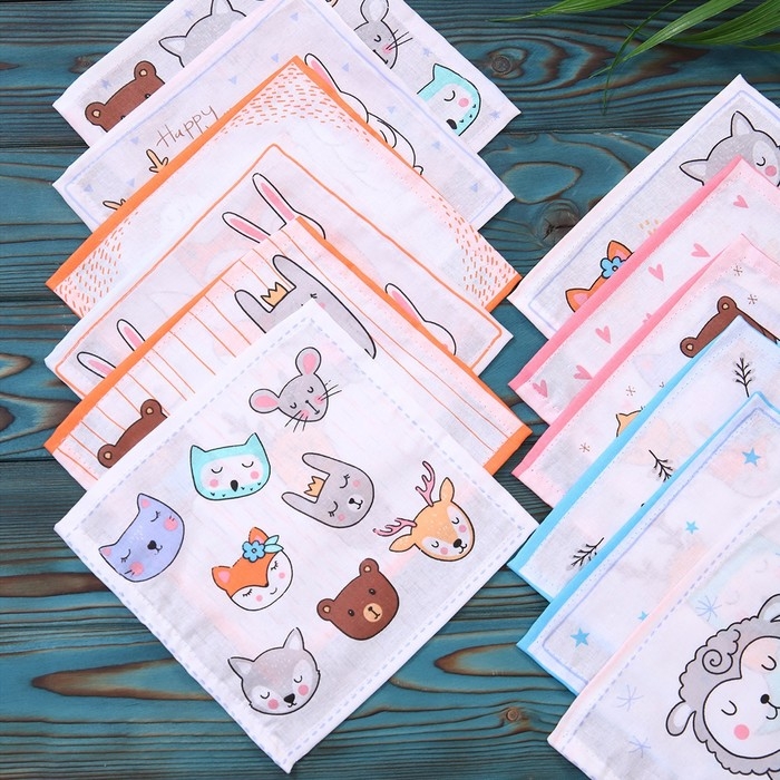 Набор платков носовых детских 18х18см, 12шт, рис 2-1290, ситец 100г/м, хл100%