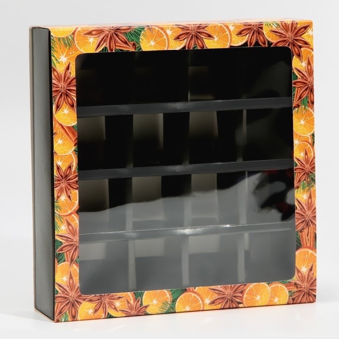Коробка под 16 конфет с ячейками «Вкусный новый год» 17,7 х 17,7 х 3,8 см, Новый год