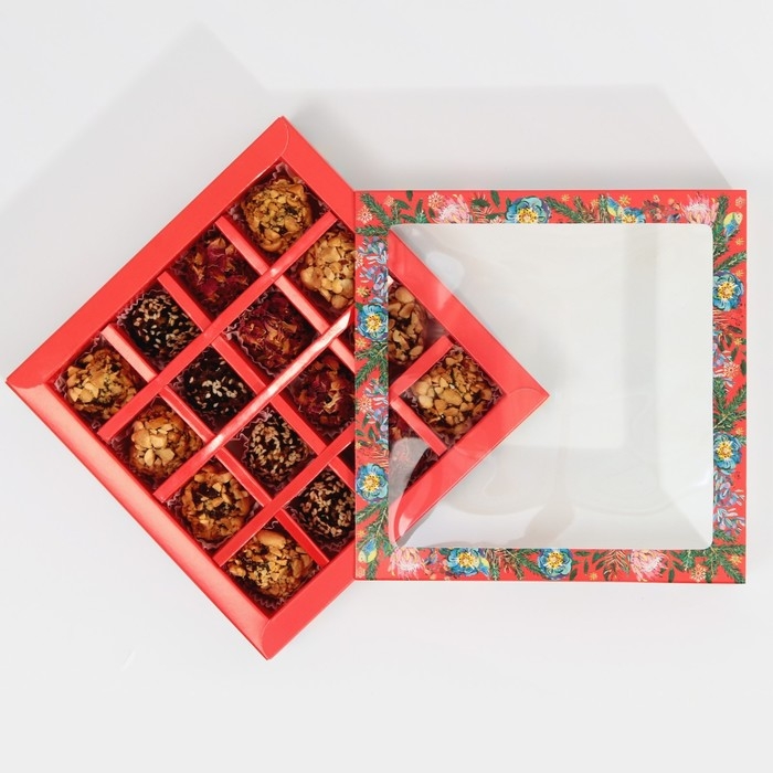 Коробка под 16 конфет с ячейками «Яркий новый год» 17,7 х 17,7 х 3,8 см, Новый год