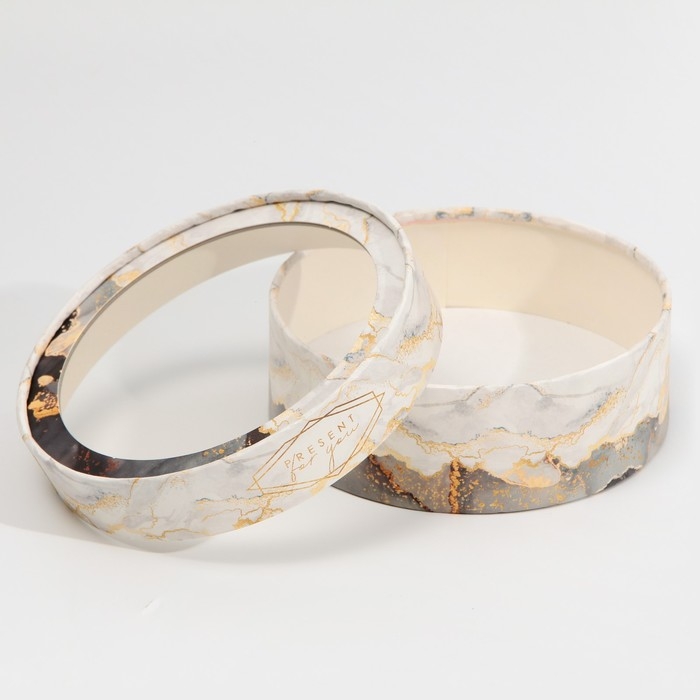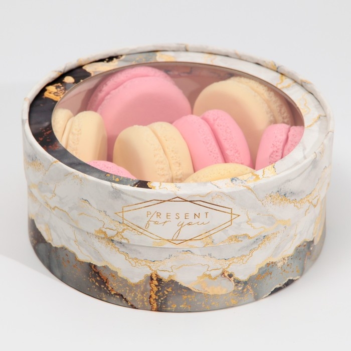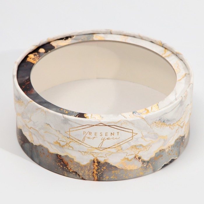 Коробка для макарун, кондитерская упаковка тубус с окном, «Мрамор» 16 х 16 х 5 см