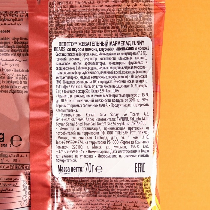 Жевательный мармелад BEBETO FUNNY BEARS, 70 г