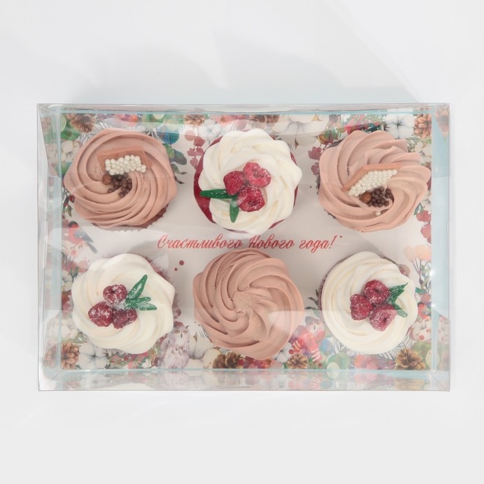 Коробка для капкейка «Акварель», 23 х 16 х 11.5 см, Новый год