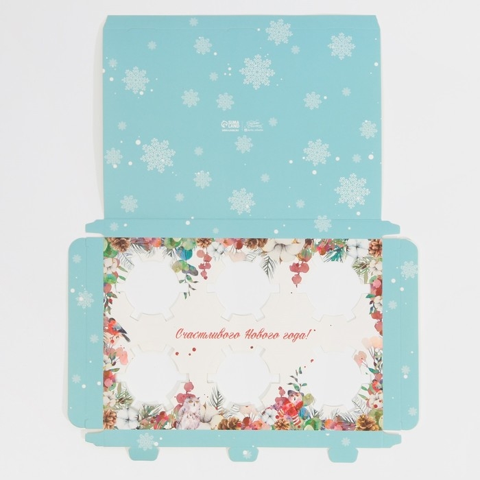 Коробка складная на 6 капкейков с окном «Паттерн снежинки», 25 х 17 х 10 см, Новый год