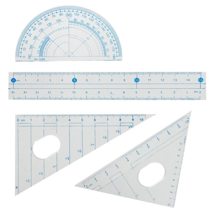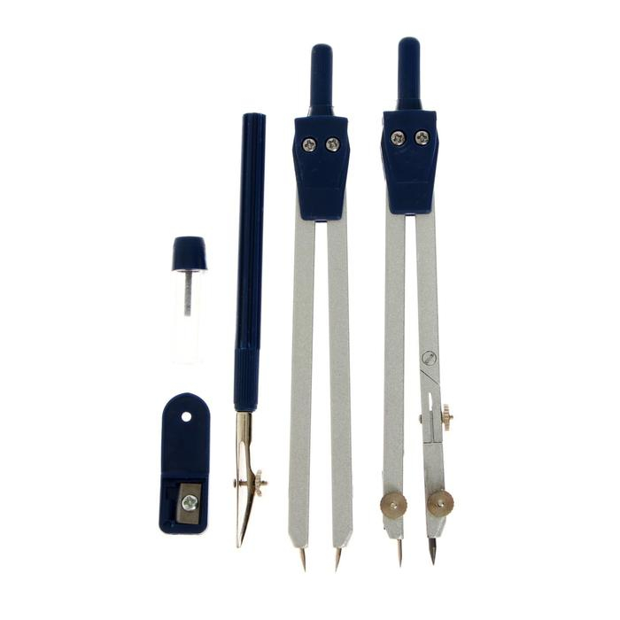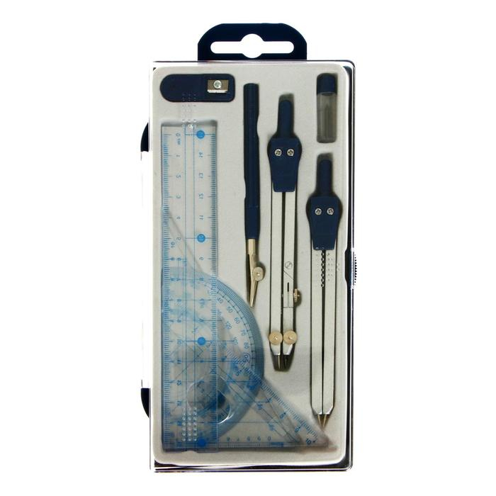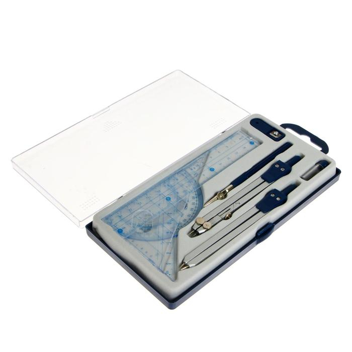 Набор чертежный 9 предметов (2 циркуля - 130 мм, грифель, точилка, рейсфедер, линейка, транспортир, 2 угольника), в пластиковом пенале