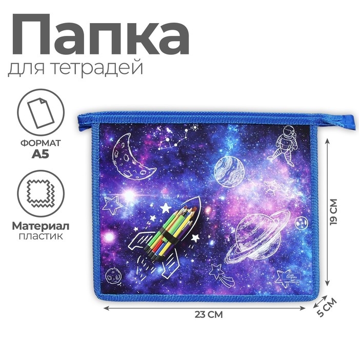 Папка для тетрадей А5, 230 х 190 х 50 мм, молния сверху, пластиковая, Calligrata "Ракета"