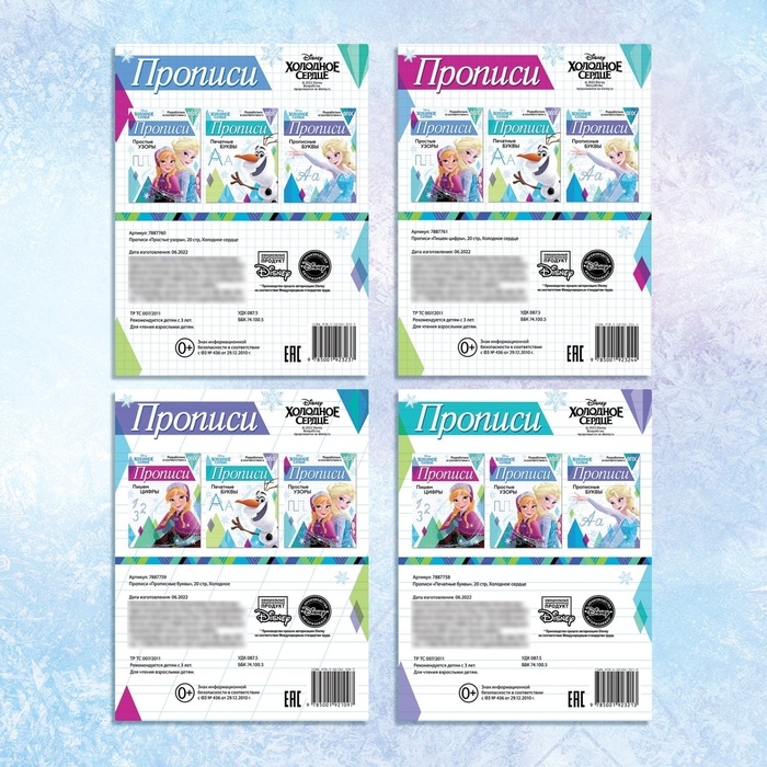 Набор прописей «Буквы, цифры и узоры», 4 шт. по 20 стр., А5, Холодное сердце