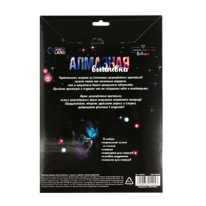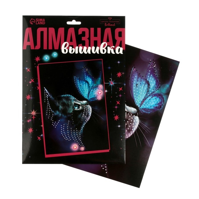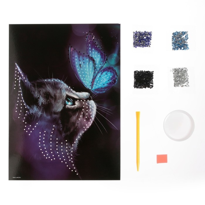 Алмазная мозаика с частичным заполнением на картонной основе «Котик и бабочка», 21 х 30 см
