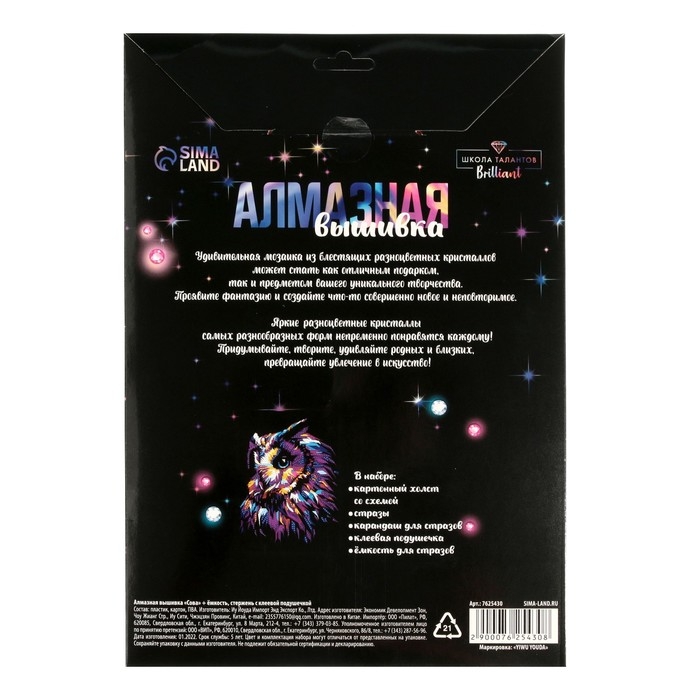 Алмазная мозаика с частичным заполнением на картонной основе «Сова», 21 х 30 см