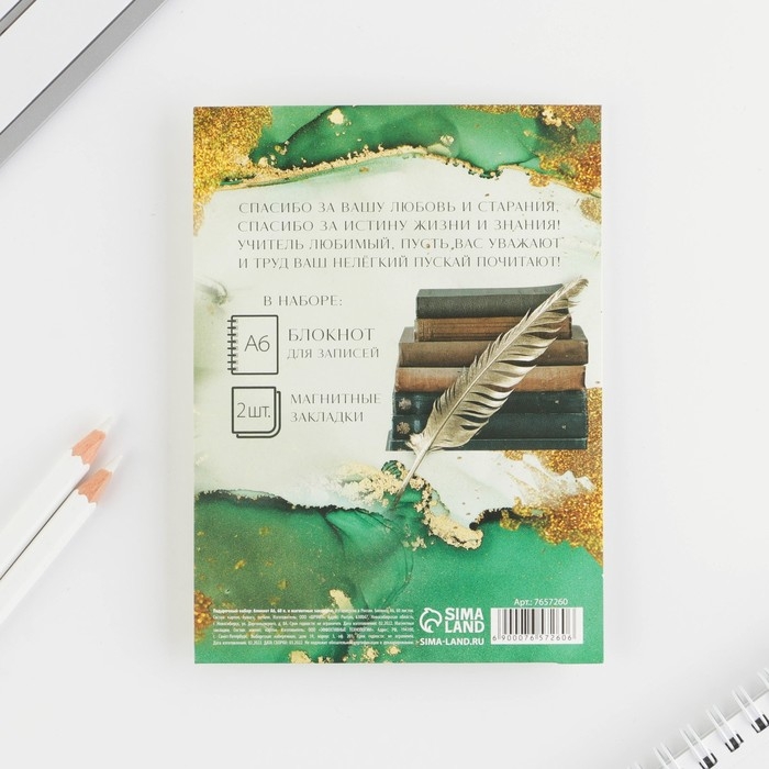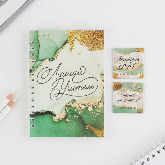 Подарочный набор: «Учителю: Лучший Учитель» блокнот А6, 60 листов и магнитные закладки 2 шт.