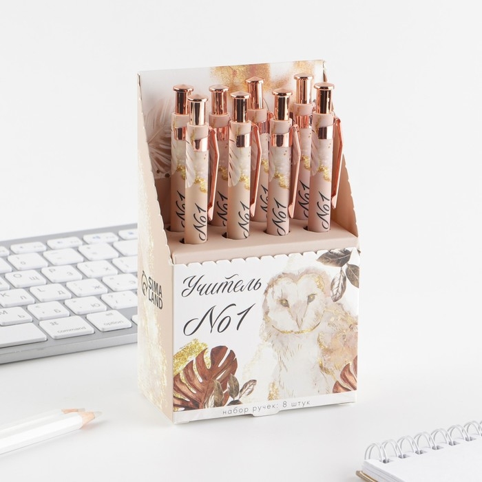Ручка Soft-touch «Учителю: Учитель №1», ручка шариковая, синяя паста, 0.7 мм, 8 шт.