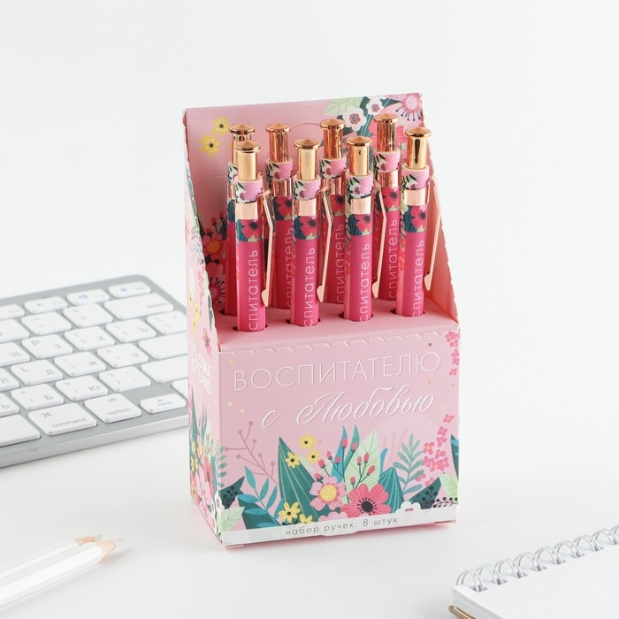 Ручка Soft-touch «Воспитателю с любовью» ручка шариковая, синяя паста, 0.7 мм, 8 шт.