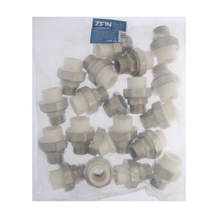 Муфта комбинированная ZEIN, полипропиленовая, американка, наружная резьба, d=20 мм х 3/4"