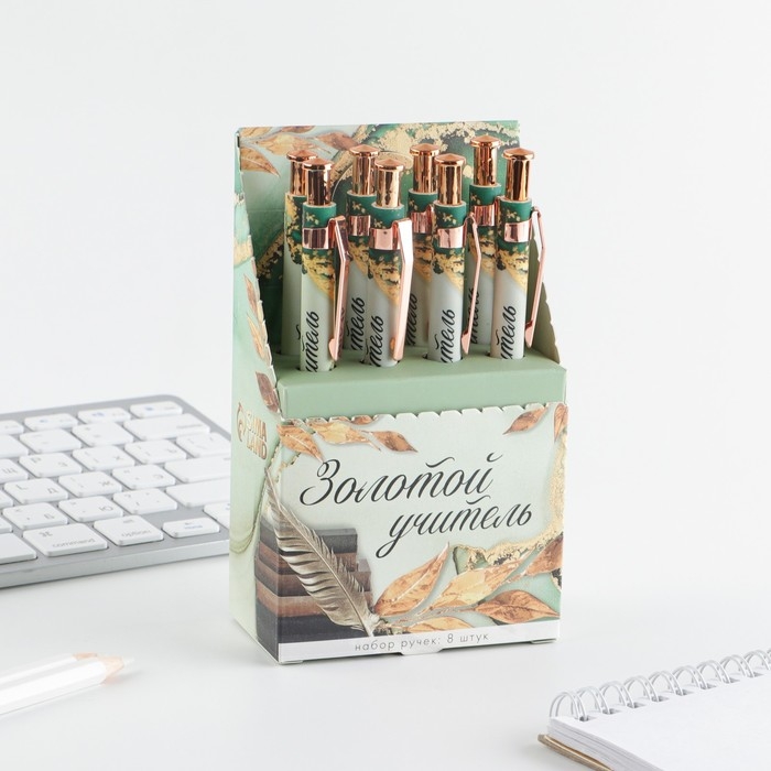 Ручка Soft-touch «Учителю: Золотой учитель», ручка шариковая, синяя паста, 0.7 мм, 8 шт