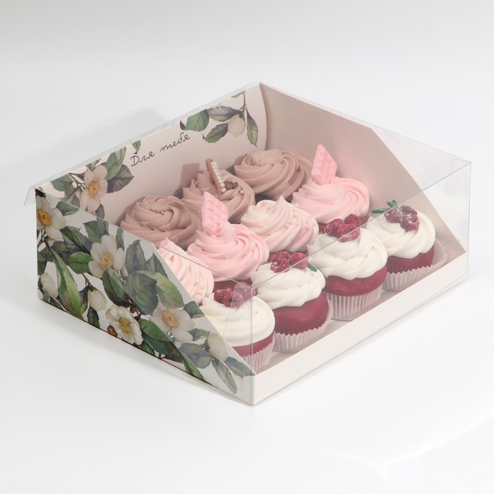 Коробка кондитерская с PVC-крышкой, упаковка, «Цветы», 25 х 22,5 х 10 см