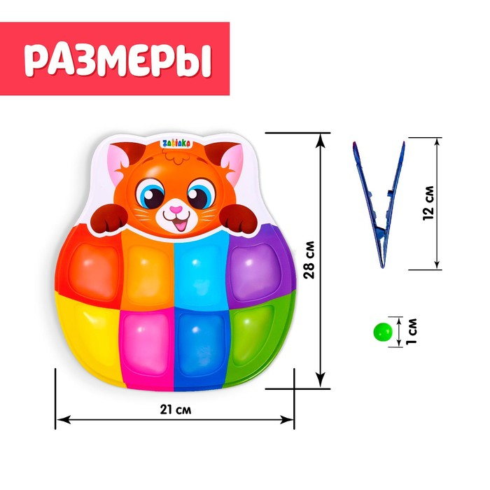 «Весёлые бусинки» — развивающий сортер для детей от 3 лет. Непоседливый и шустрый котёнок растерял любимые игрушки. Малышу предстоит помочь котику разложить бусинки по цветным отсекам при помощи пинцета.