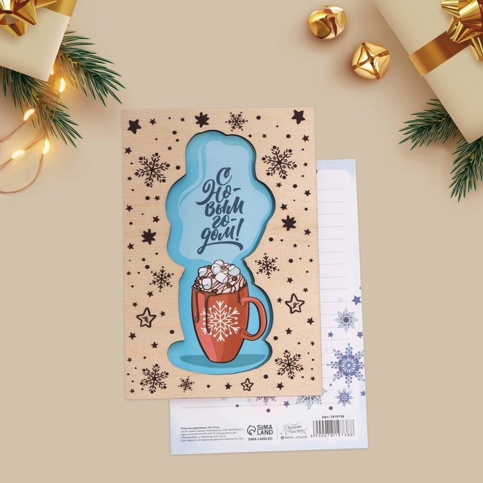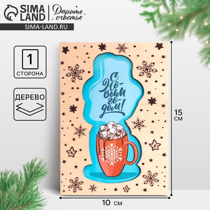 Открытка с новым годом деревянная «Уютный праздник», 10 х 15 см, Новый год