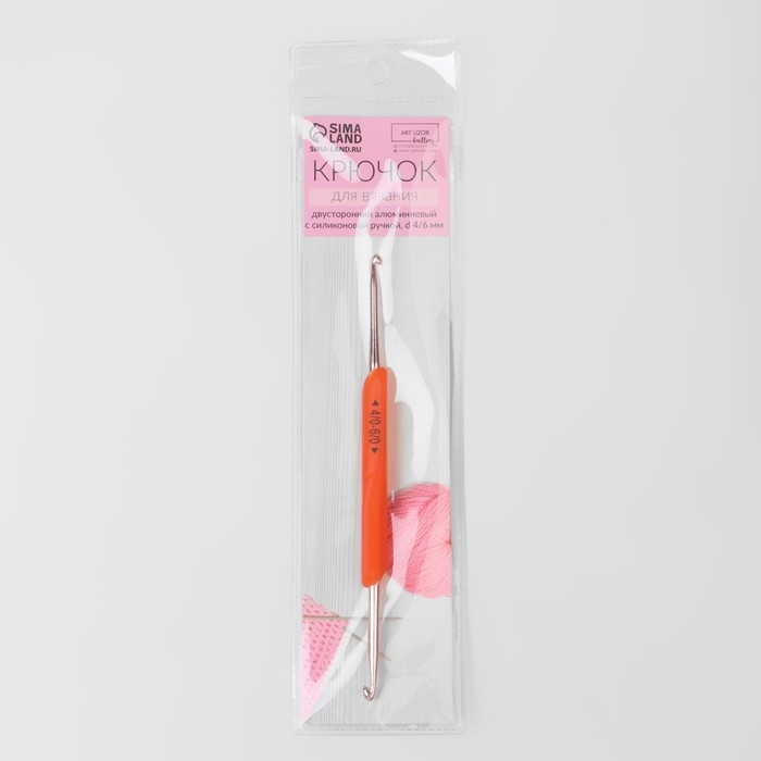 Крючок для вязания, двусторонний, с силиконовой ручкой, d = 3/4 мм, 13,5 см, цвет оранжевый