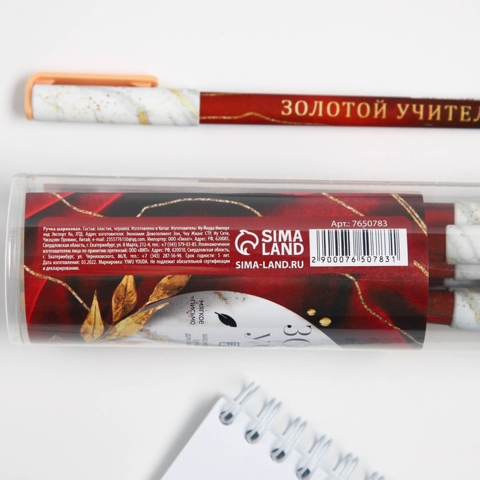 Ручка в тубусе «Золотому учителю, С Уважением!», пластик, синяя паста, 1.0 мм