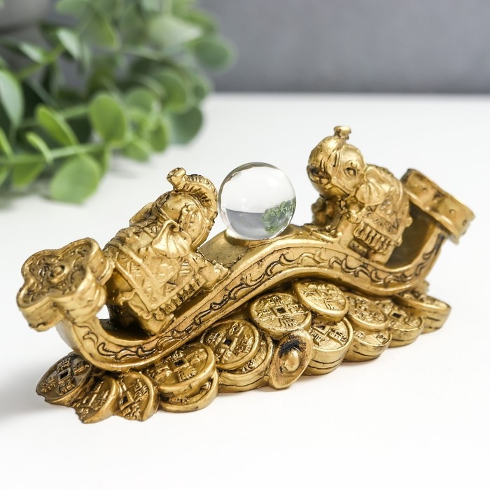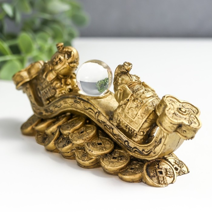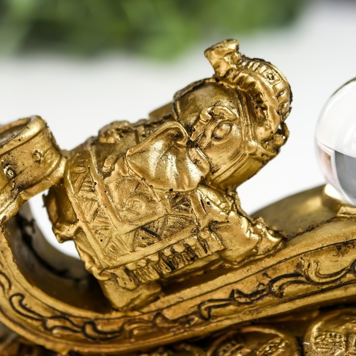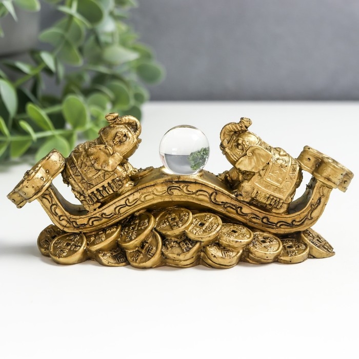 Нэцке полистоун под бронзу "2 слона на жезле Жуи с кристаллом" 5х4,5х12,5 см 222768