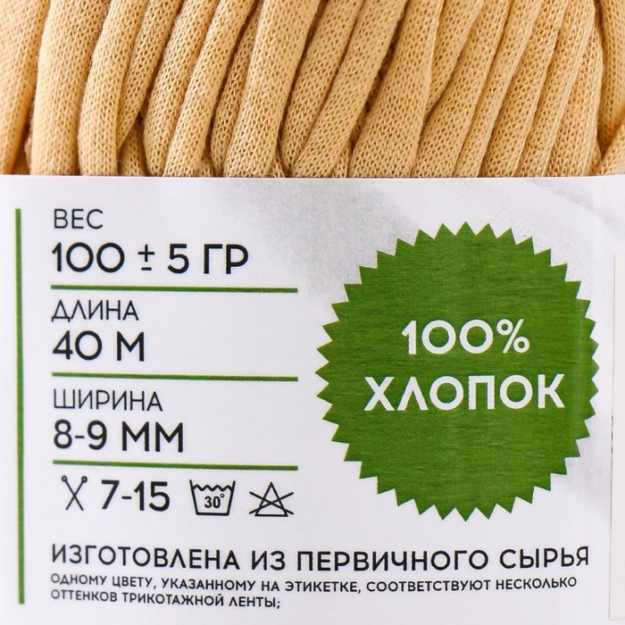 Пряжа трикотажная 100% хлопок "Лентино mini" 100 гр 40 м цвет 23 песок