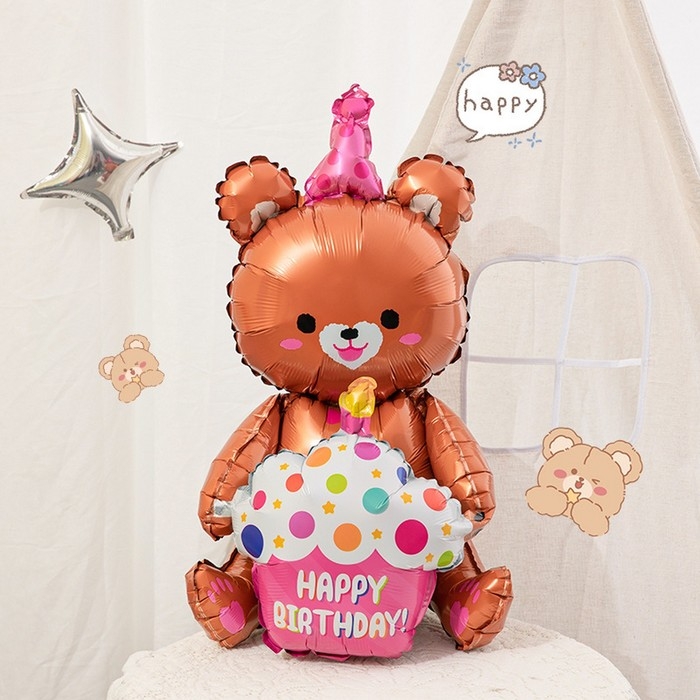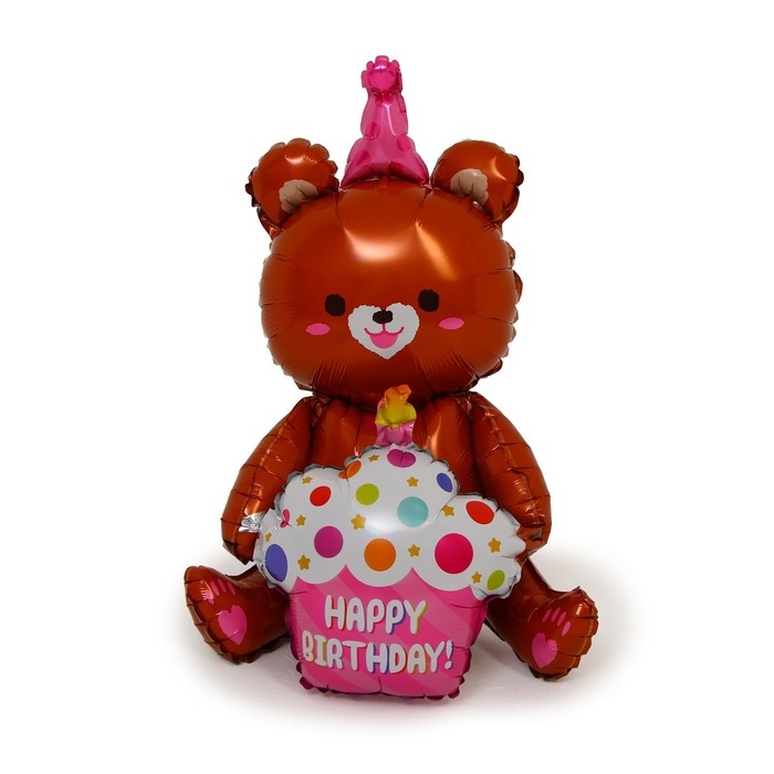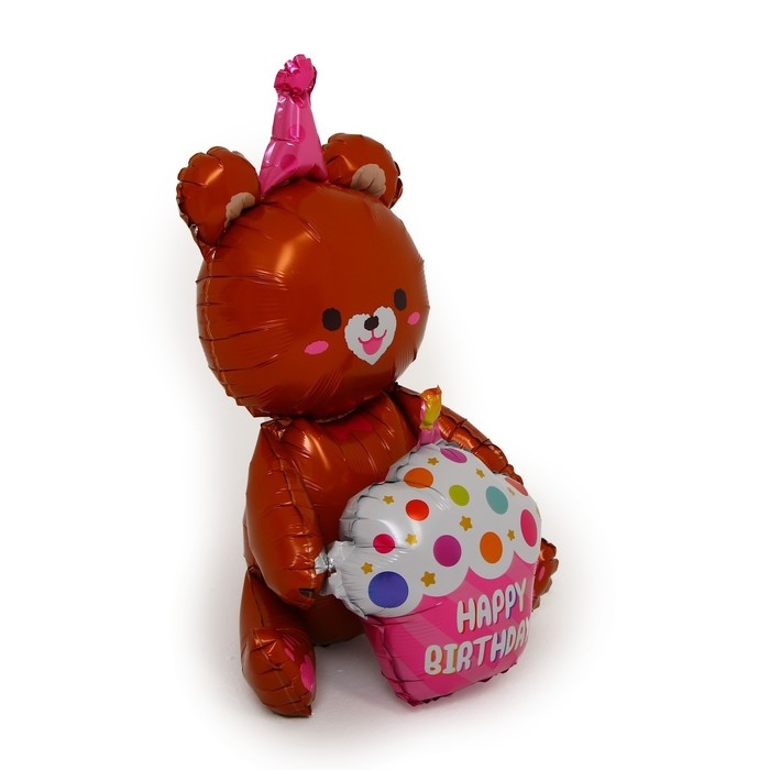 Шар фольгированный 28" «Мишка с подарком», бурый