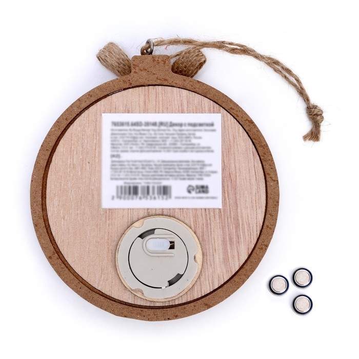 Изделие выполнено из экологичного материала — дерева и работает от батареек.