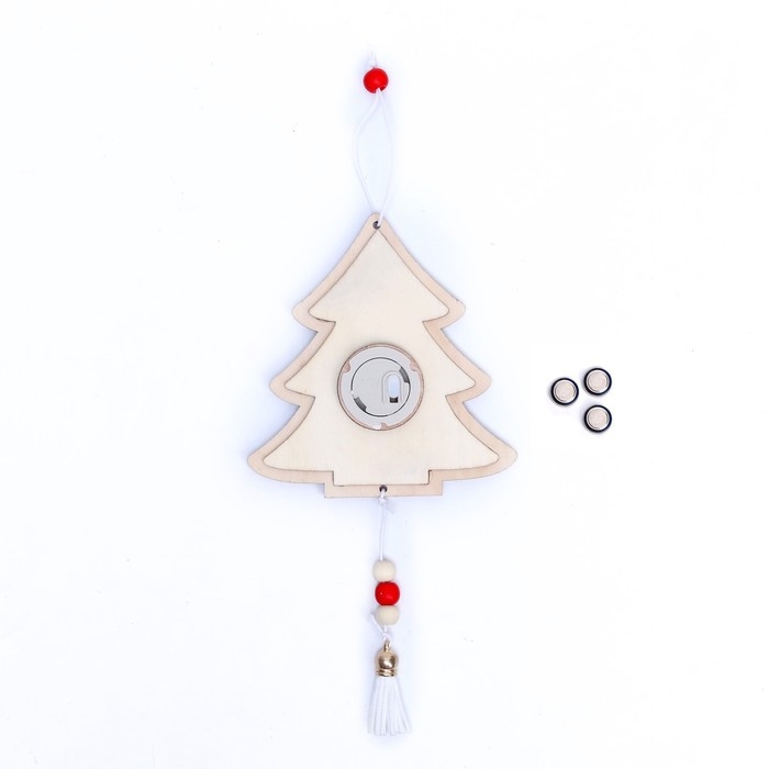 Изделие выполнено из экологичного материала — дерева и работает от батареек.