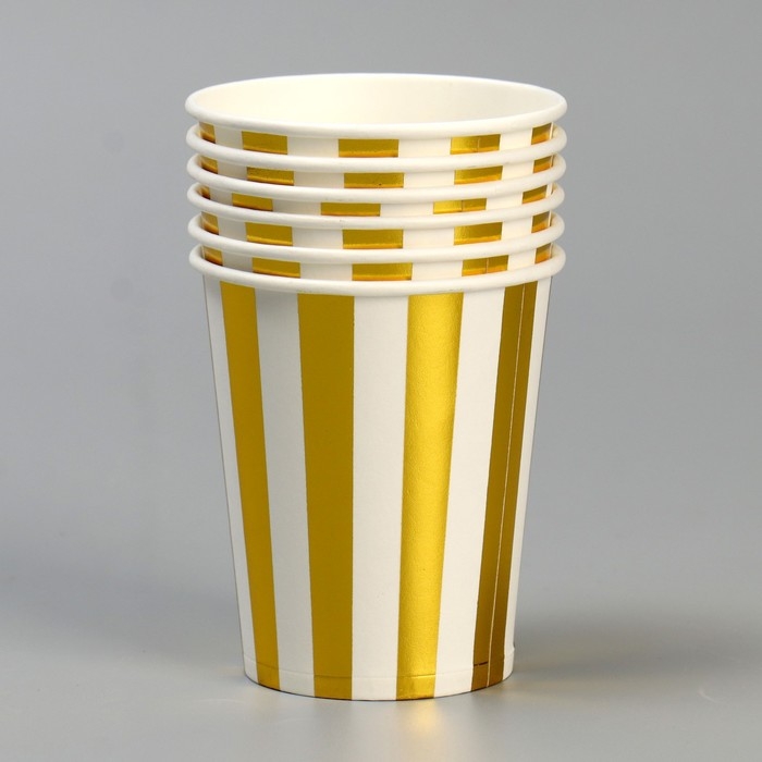 Стакан бумажный «Полоска», набор, 6 шт., цвет золото