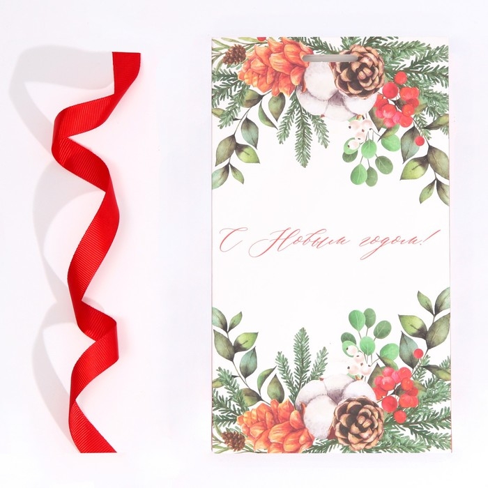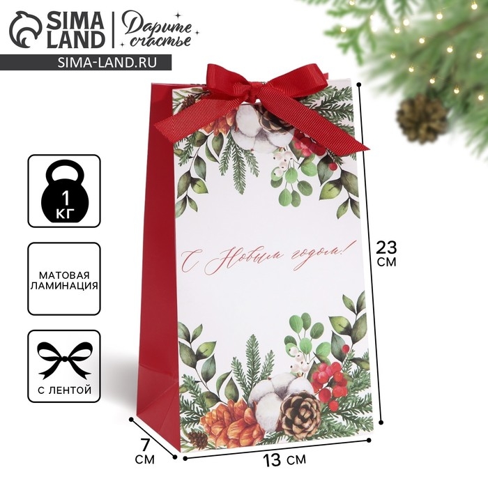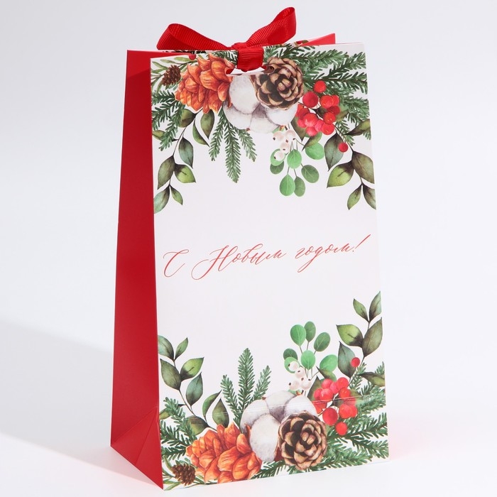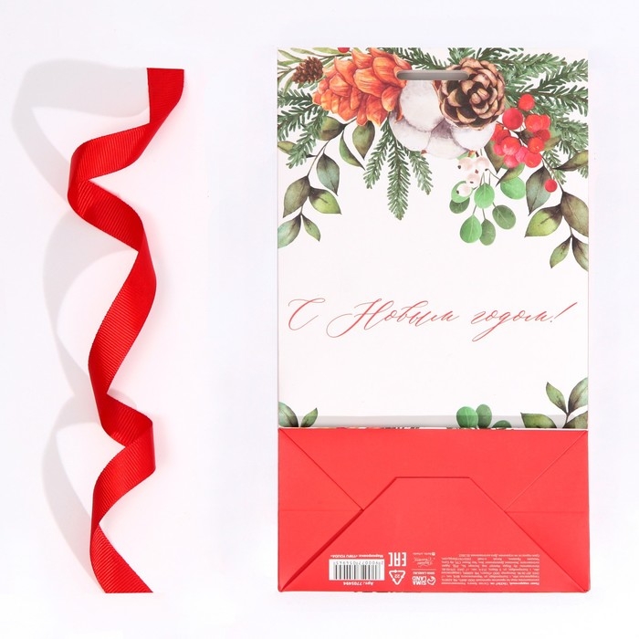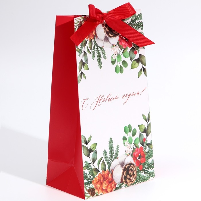 Пакет подарочный новогодний с лентой «Новогодняя пора», 13 х 23 х 7 см, Новый год