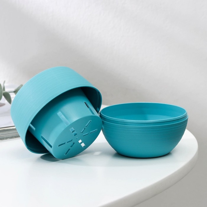 Горшок для цветов с поддоном «Япония», 125 мл, d=8 см, h=6,5 см, цвет бирюзовый