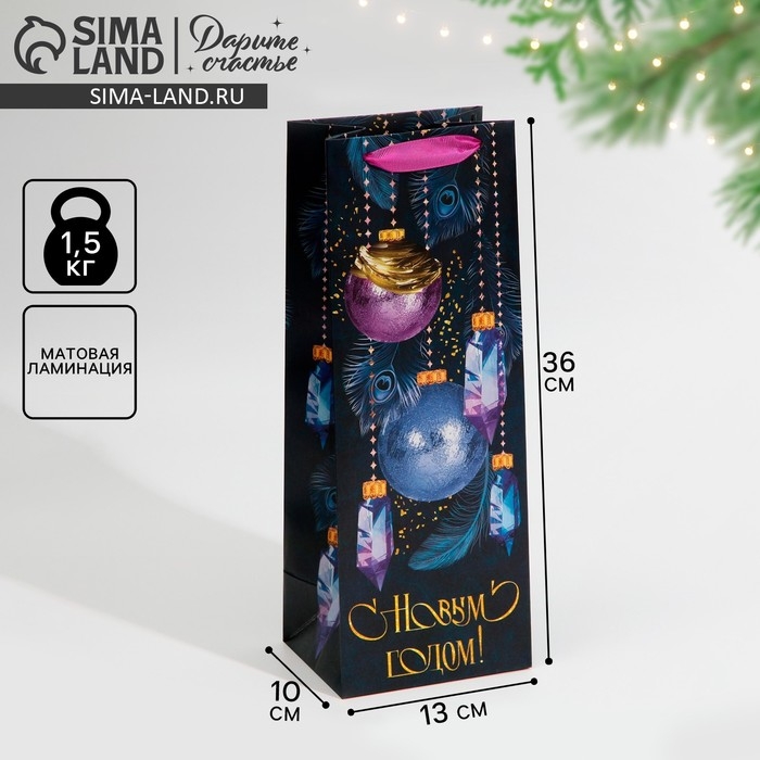 Пакет под бутылку «Новый год», 13 х 36 х 10 см, Новый год