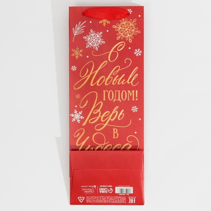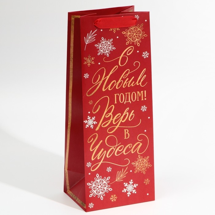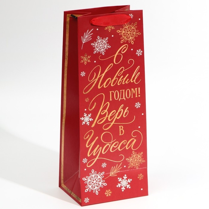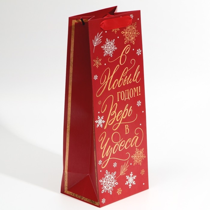 Пакет под бутылку «Верь в чудеса», 13 х 36 х 10 см, Новый год
