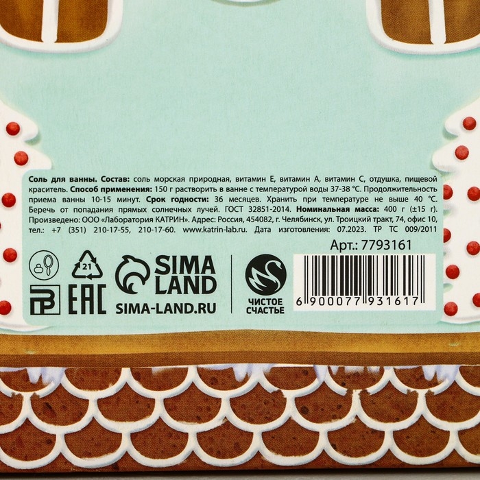 Соль для ванны «Пряничный Новый Год», 400 г, аромат молока и ванили, ЧИСТОЕ СЧАСТЬЕ